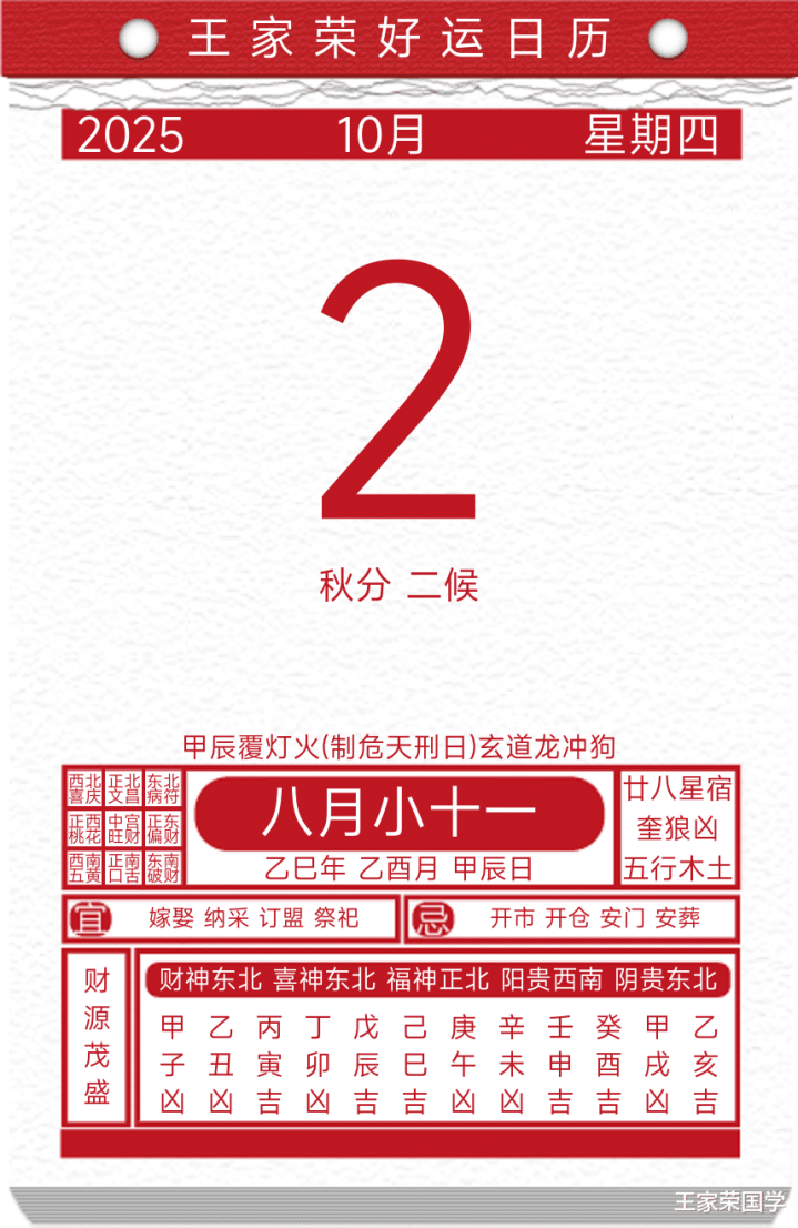 每日黄历吉凶宜忌2025年10月2日